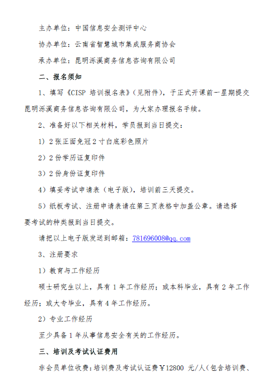上一篇:关于举办注册信息安全专业人员(CISP)第六批资质认证培训通知